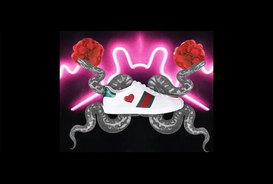 Collage and animation collide in artist Rita Zimmermann’s interactive take on Gucci’s Ace sneaker. Game on.