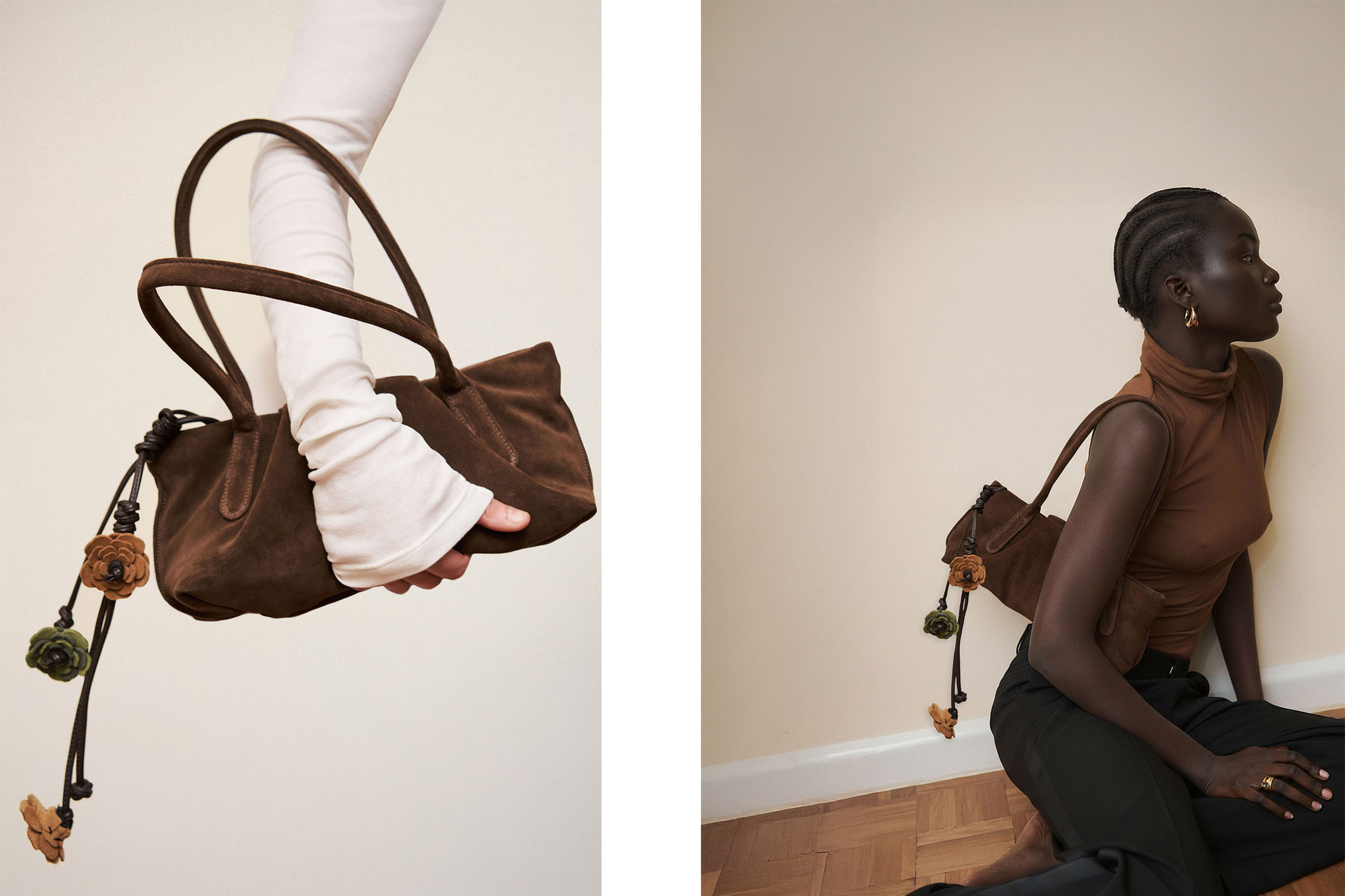 A-ESQUE has unveiled a new sculptural collaboration with leading Australian florist and creative director Christelle Scifo of Fleurette, introducing the Floral Vines Collection – a series of handcrafted leather pieces that reimagine the accessory as an object of personal expression through braided vines and meticulously hand-stitched suede florals made in the Melbourne Atelier. Presented in rich tones of Plum, Matcha, Tan and Burgundy, the collection includes wearable key pieces designed to be styled in multiple ways.